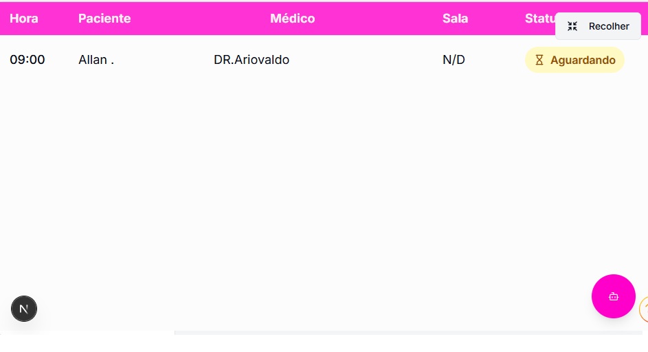Lista em tempo real das próximas consultas para pacientes, reduzindo dúvidas e melhorando a experiência no espaço físico.