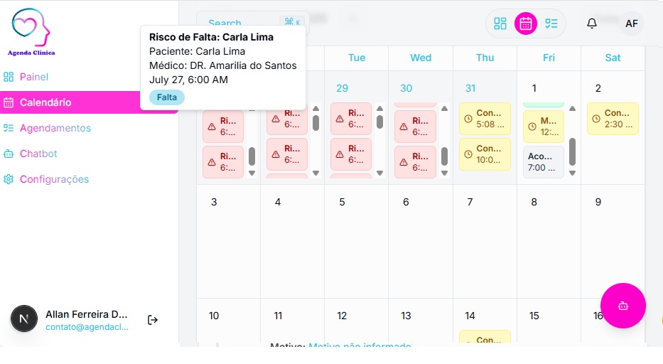Uma plataforma inteligente que reduz faltas em consultas médicas com lembretes automatizados, remarcação instantânea e análise preditiva, otimizando agendas, economizando recursos e melhorando o acesso à saúde para todos.